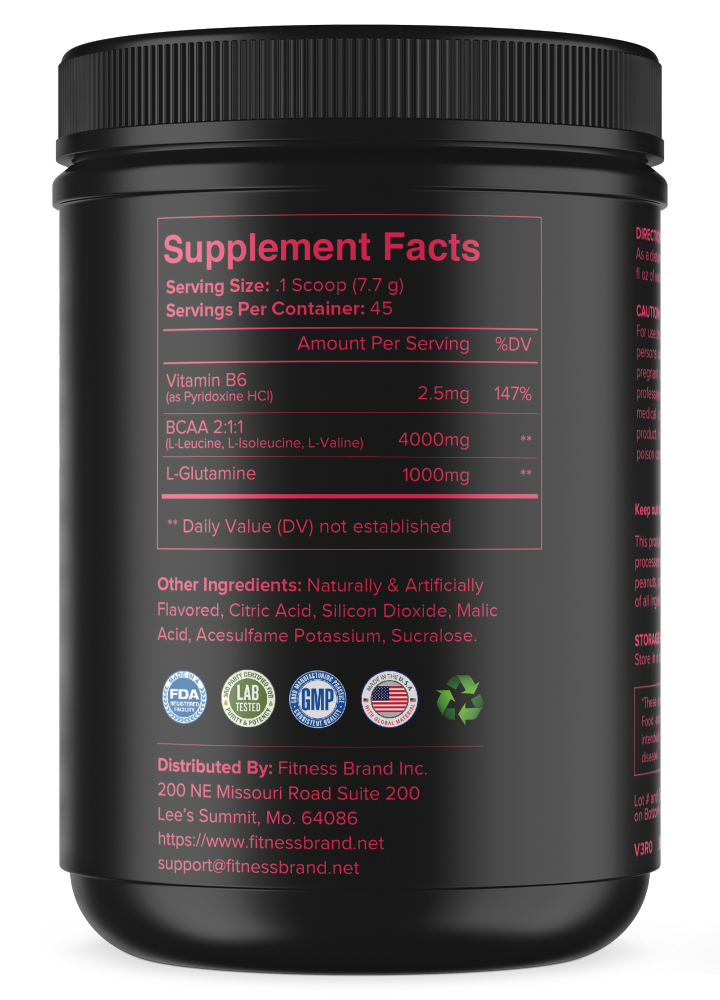 Mix 1/2 scoop (6.5g) of BCAA in 8-10 ounces of cold water. It’s best consumed pre-workout, post-workout, or between meals. Allow a few minutes for the powder to fully dissolve in the beverage.